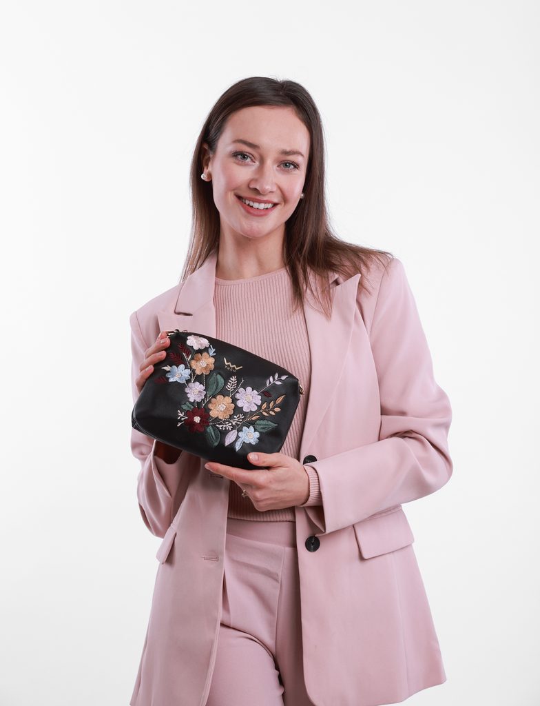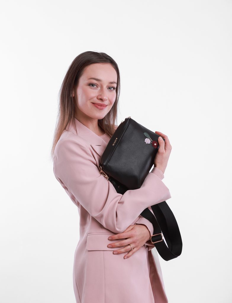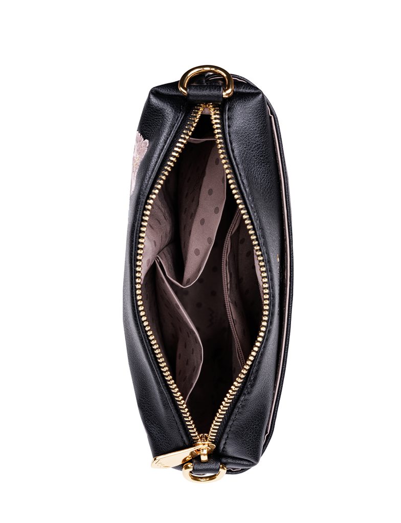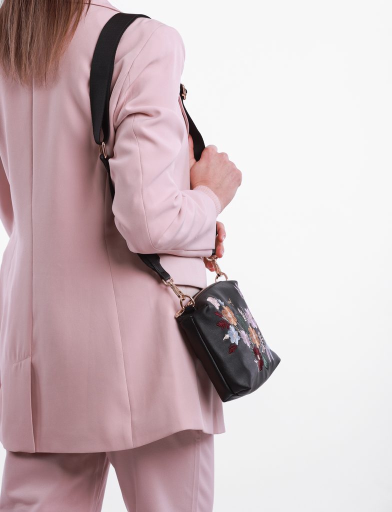 Coalie Flowers Black torba crossbody z cvetlično vezenino