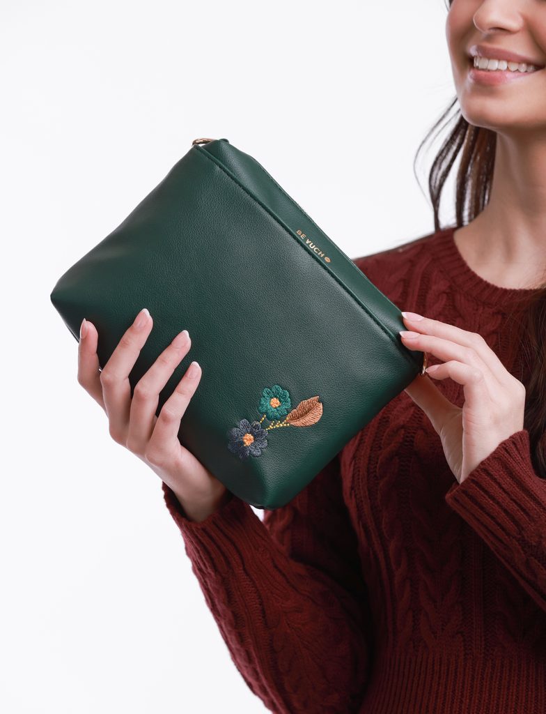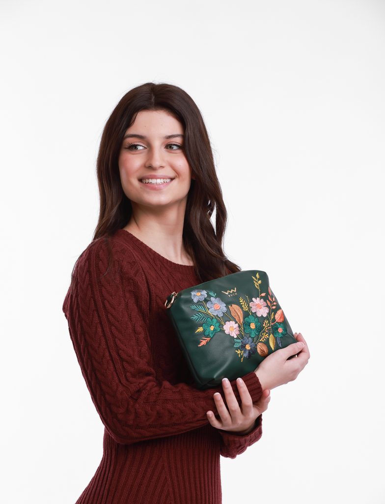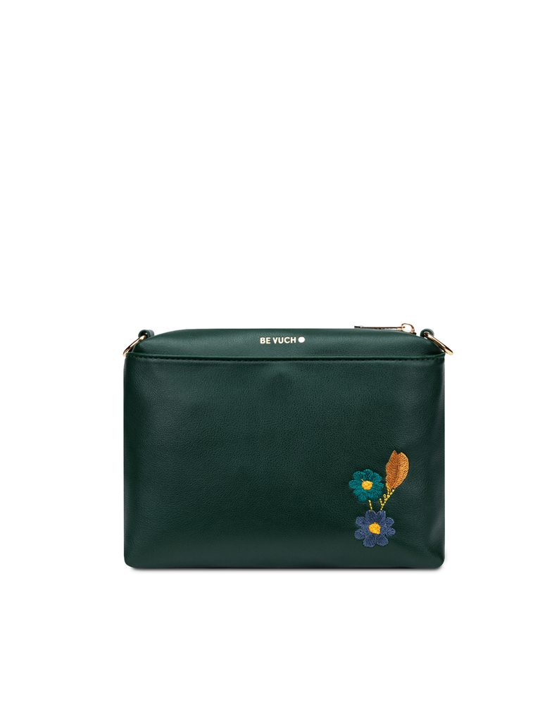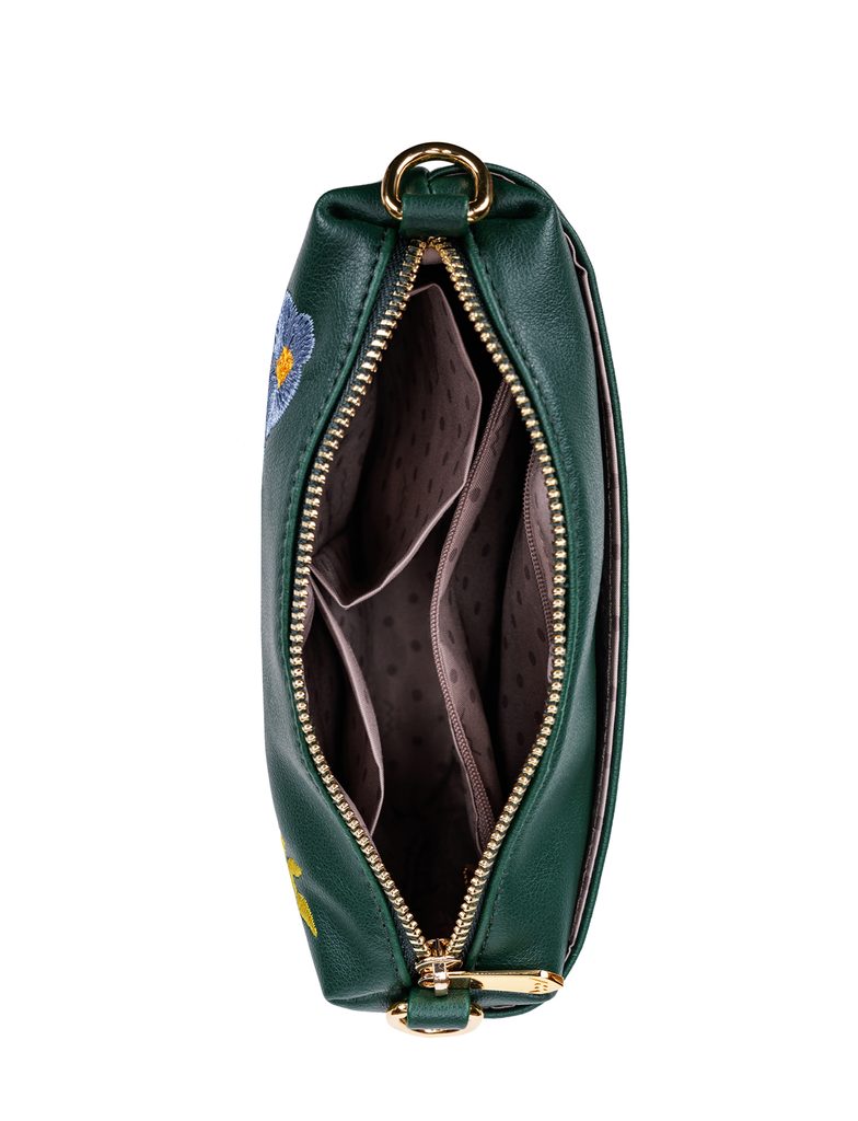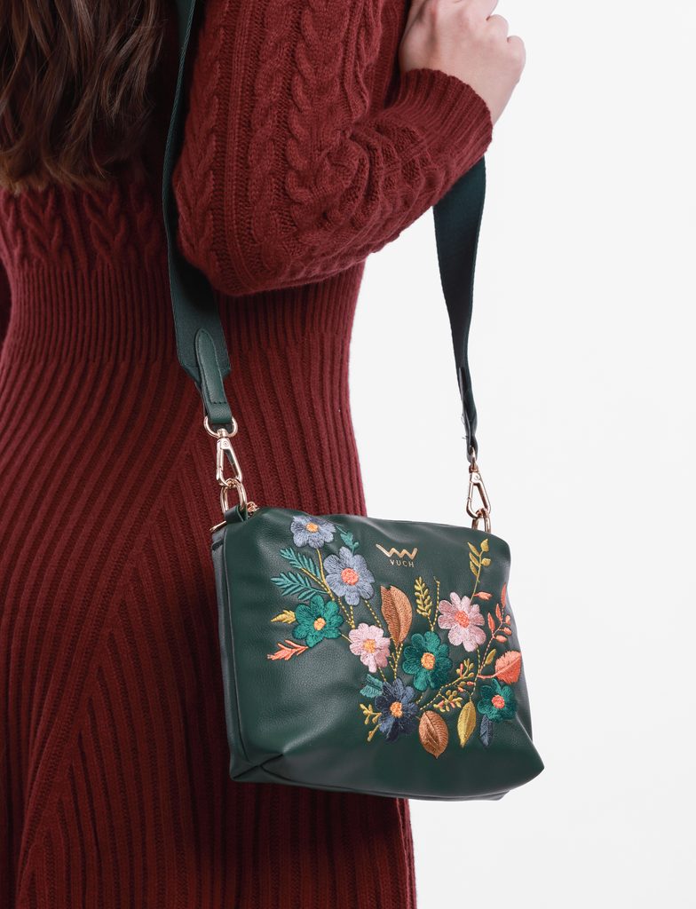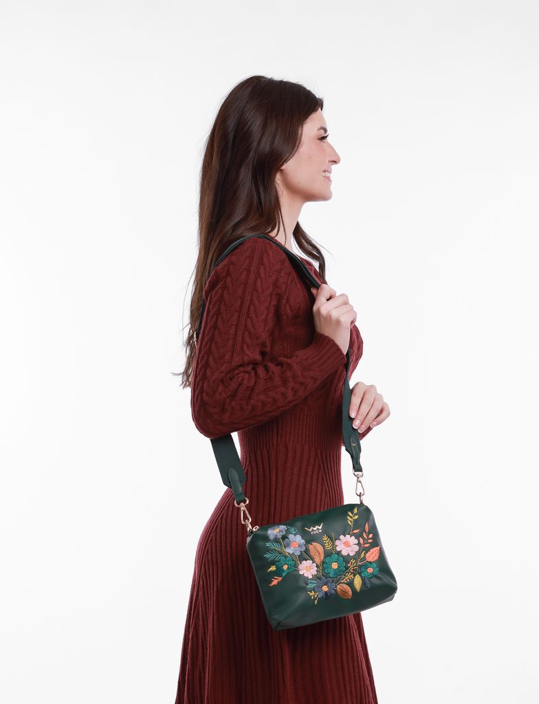 Coalie Flowers Green crossbody torba z cvetlično vezavo