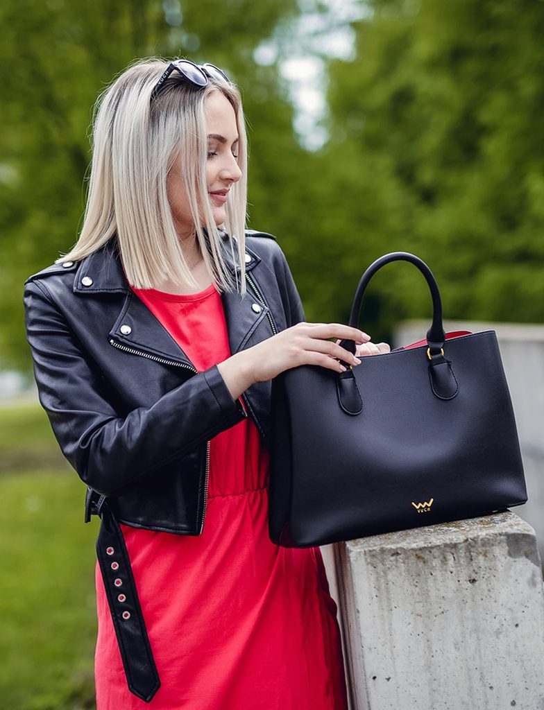 „Lepa od znotraj in od zunaj. Prav to je torbica Cynthia, ki je edinstvena po tem, da je zunaj črna, znotraj pa rdeča. In v sebi skriva nekaj dodatnega. Je zelo…