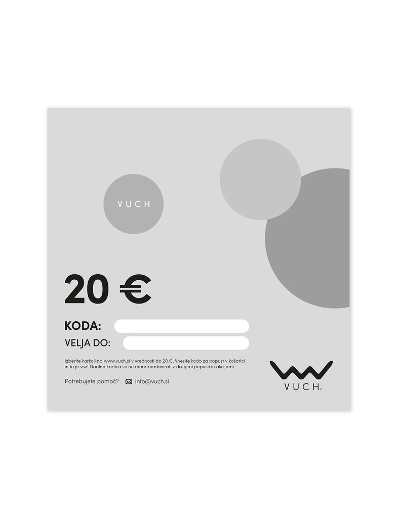Več informacijBi radi koga osrečili, vendar niste prepričani, kaj izbrati v naši e-trgovini? Darilna kartica je lahko odlična izbira za vse. Ta ima vrednost 20€, zato je edino kar morate narediti, izbrati nekoga in ga osrečiti z novim Vuch izdelkom.