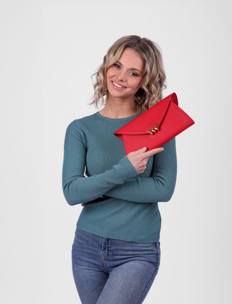 Joelyne Red elegantna torbica z pasom