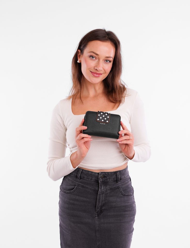 Več informacijPike so nazaj in komaj čakajo, da popestrijo tvojo torbico! Srednje velika denarnica, ki združuje priljubljene lastnosti Tali Tammy v igrivem pikčastem dizajnu. Je prostorna, praktična in nepozabna, tako da se pripravi na vprašanje: "Kje si jo dobila?"
