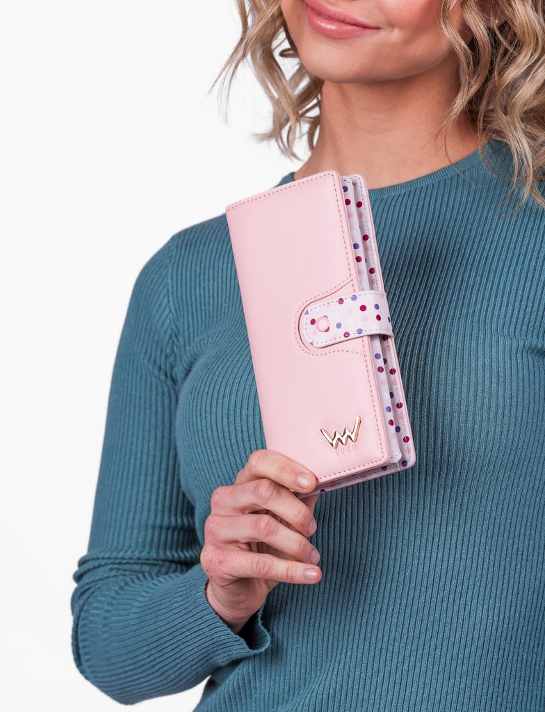 Ladea Pink velika pikčasta denarnica s magnetnim zapiralom