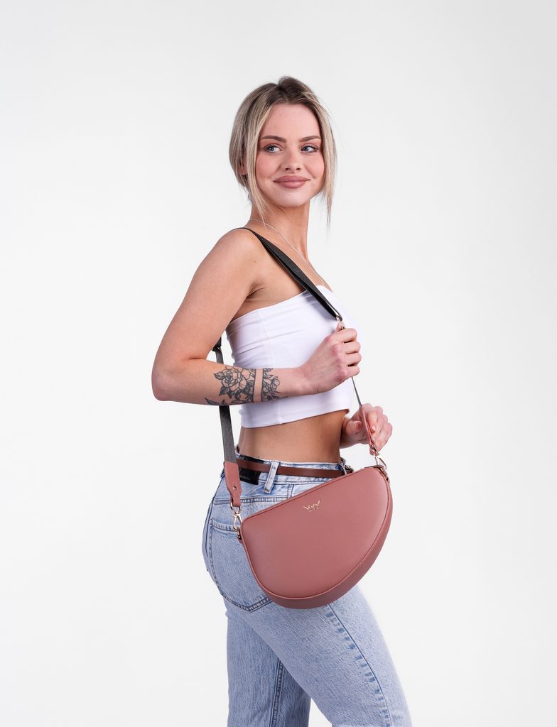 Larrel Dusty Pink asimetrična crossbody torbica z zadrgo