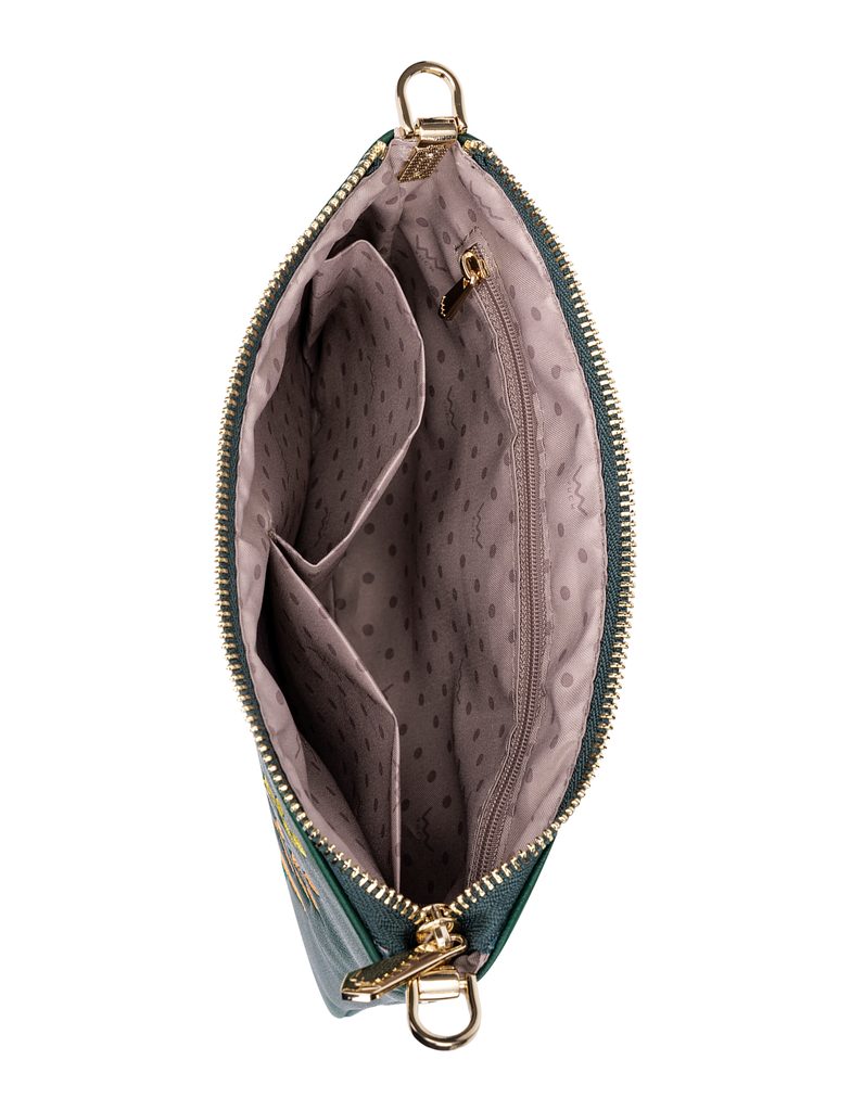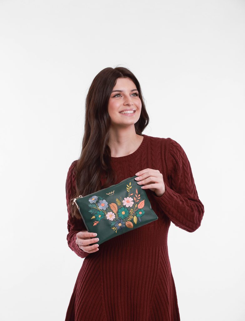 Lylann Flowers Green mini torbica z cvetlično vezenino