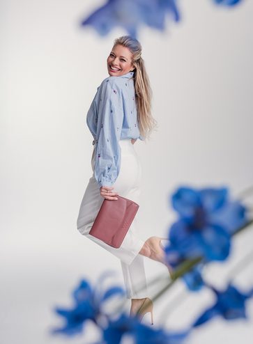 nahrbtnik s cvetličnim potiskom in vezenjem