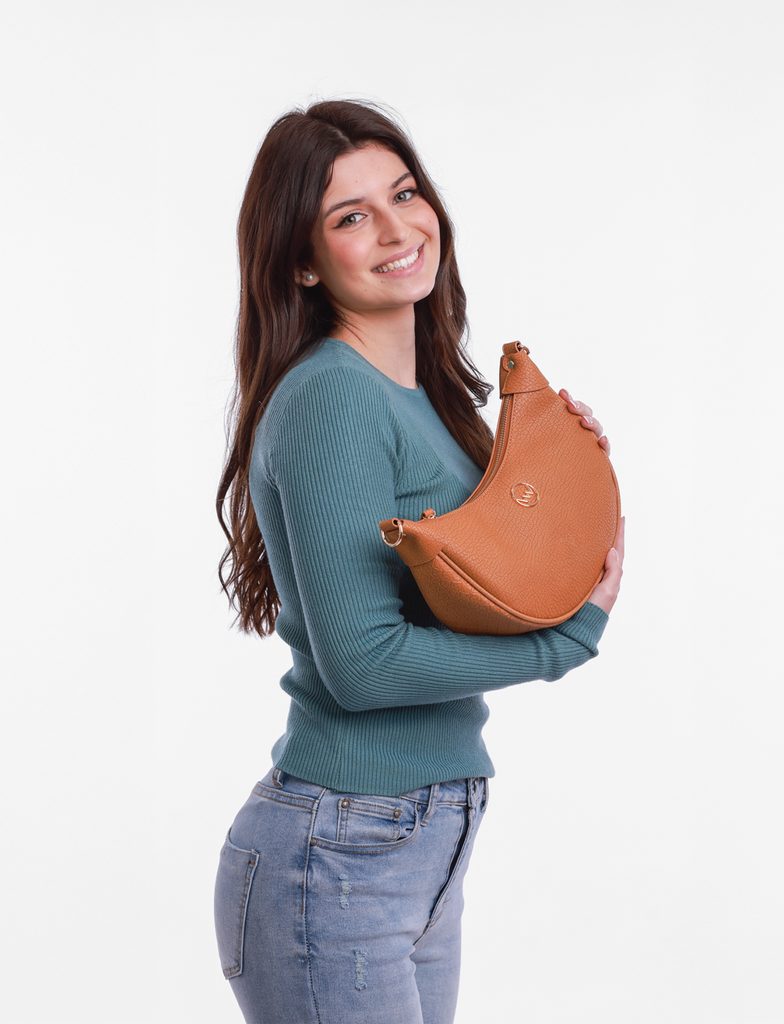 Več informacijNessa je stilska zaobljena torbica, ki se zaradi mehke konstrukcije naravno prilagaja vašemu nošenju. Ozek trak zagotavlja udobje, medtem ko okroglo logo in nežne lasersko izrezljane podrobnosti dodajajo eleganten pridih. Lahka, praktična in popolna za vsak dan.