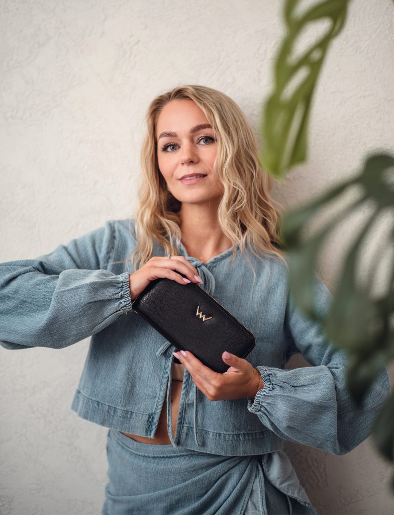Več informacij„Sem prestižen kos! Povejte ali mi kombinacija elegantnih črnih in zlatih detajlov ne ustreza? Sama mislim, da sem hit! Pa ne samo zaradi mojega videza, temveč tudi zaradi tega, kar je v notranjosti. Če vas kaj zanima lahko vprašate. Veliko prostora za vse vaše bankovce, kovance in kartice."