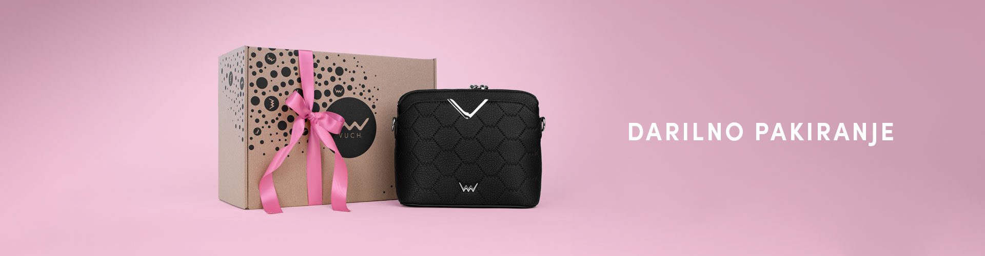 Darilno pakiranje VUCH je privlačno na prvi pogled. In na drugi tudi okolju prijazno! Naše (nad)standardno pakiranje naročil Ti bo prineslo nepozabno izkušnjo: Najprej zunanja reciklabilna zaščitna folija, ki preprečuje poškodbe paketa. Sledi razpakiranje, Tvoje sijoče oči, svilnati barvni trak iz ekološke preje, darilna škatla s čudovitim vizualnim dizajnom, zaščitni dust bag in seveda Tvoja sanjska Vuška, ki je komaj čakala, da jo odpreš!