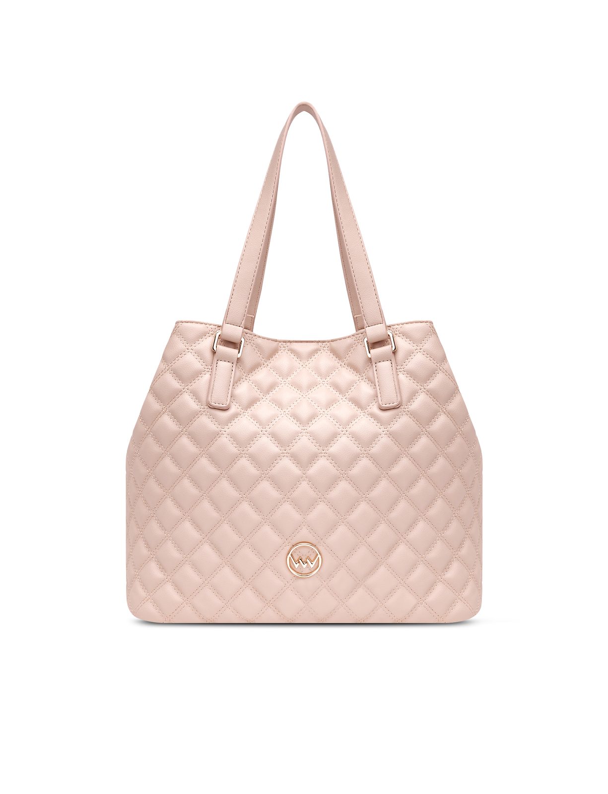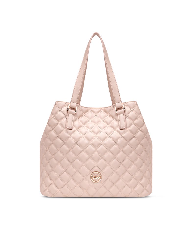 Roselda Classy Beige prešita torbica s kozmetično torbico