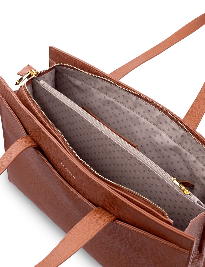 Velika pravokotna torbica, ki ohranja obliko in ima vaš vsakdanjik trdno pod nadzorom. Razdeljena na dva glavna prostora z praktično zadrgo na sredini in dodatno…