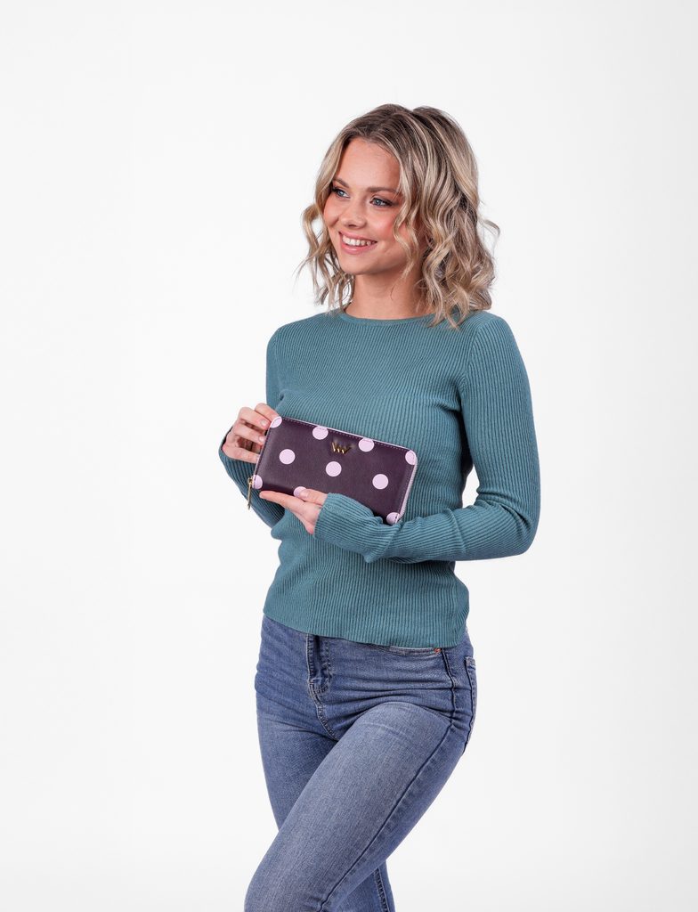 Sindy Violet pikčasta denarnica z zadrgo
