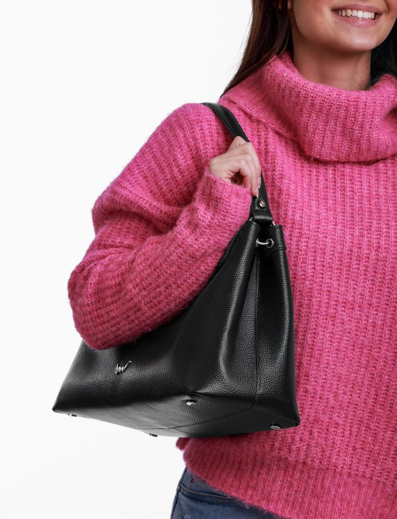 Več informacijČe si vzljubila Leyro, potem je ta lepotička njena večja in bolj praktična sestra, s katero boš kos kateremu koli izzivu. Lahko jo nosiš v roki, čez ramo ali kot crossbody - vedno bo videti odlično. Znotraj boš našla dovolj prostora za vse potrebščine, poleg tega pa te bo navdušil tudi njen eleganten dizajn. Ne glede na izbrano barvo, bo vedno zadela v črno.