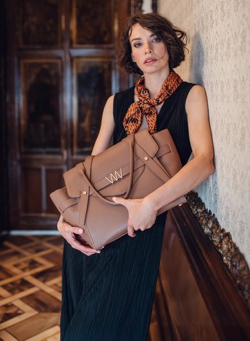 nahrbtnik s cvetličnim potiskom in vezenjem