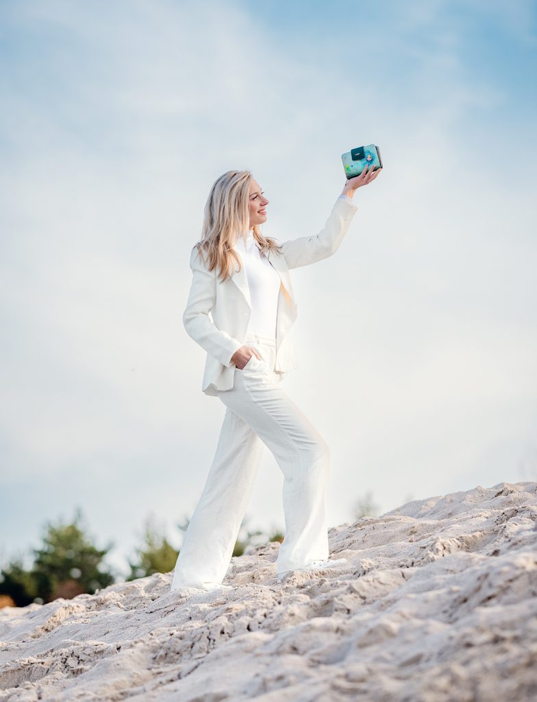 Denarnica, ki v sebi nosi mir obale in dotik poletnega vetra. V njenih gladkih linijah se odbija svetloba morja in tišina trenutkov, ko se čas upočasni. V njej je košček…