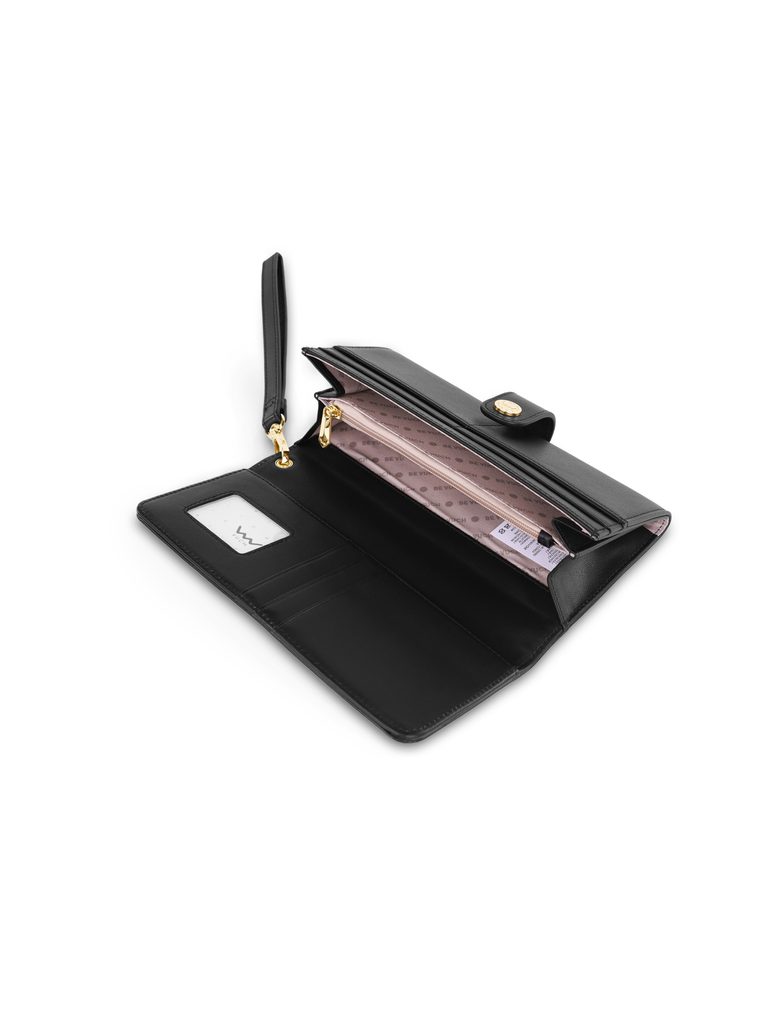 Aveline Black velika usnjena denarnica z zapestnim paščkom