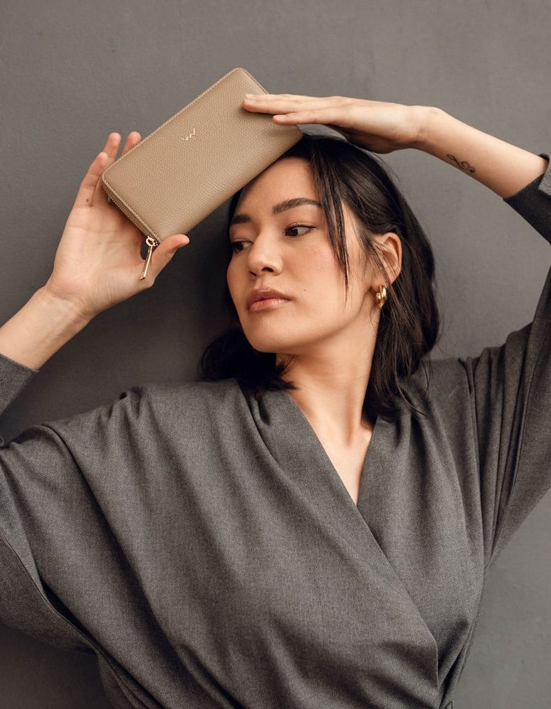 Nightie Nicci Grace Taupe denarnica z zadrgo iz italijanske goveje kože