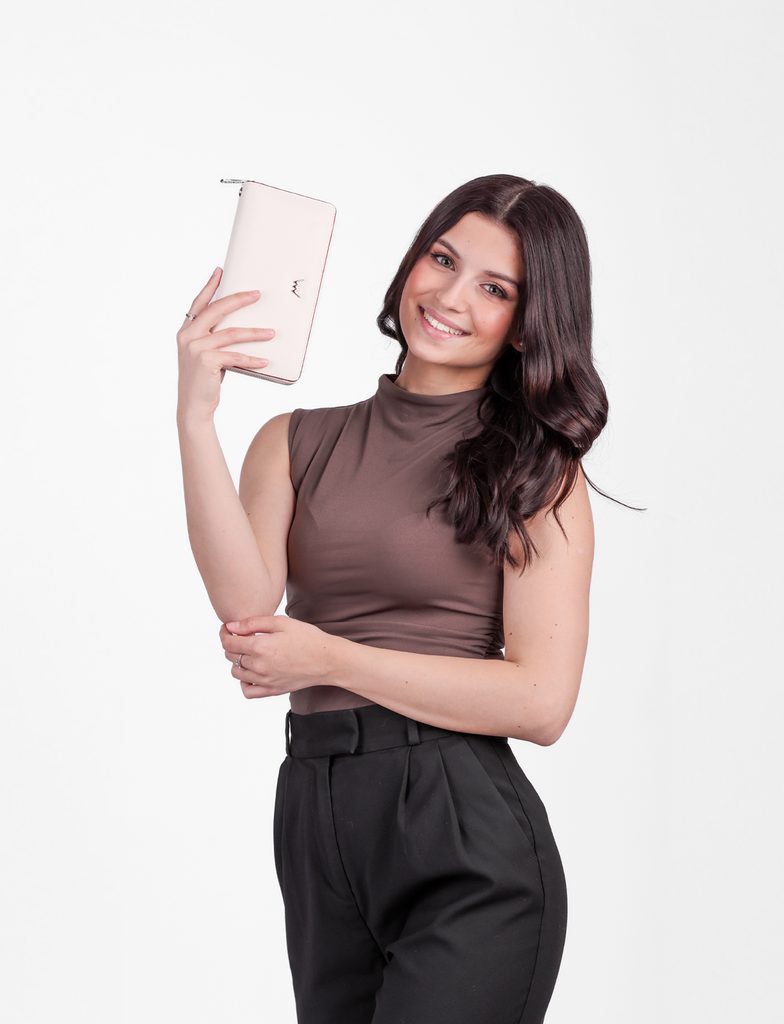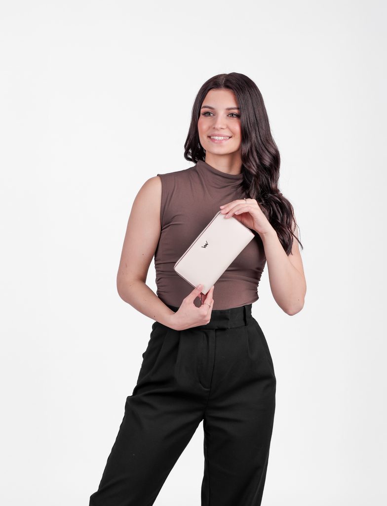 Rodriga Cream velika usnjena denarnica z zapestno zanko