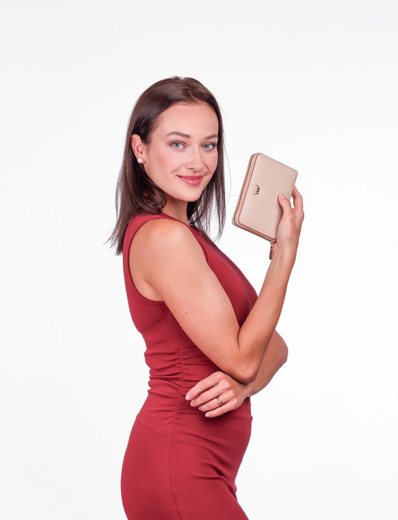 Rodriga Mini Beige elegantna usnjena denarnica z zadrgo