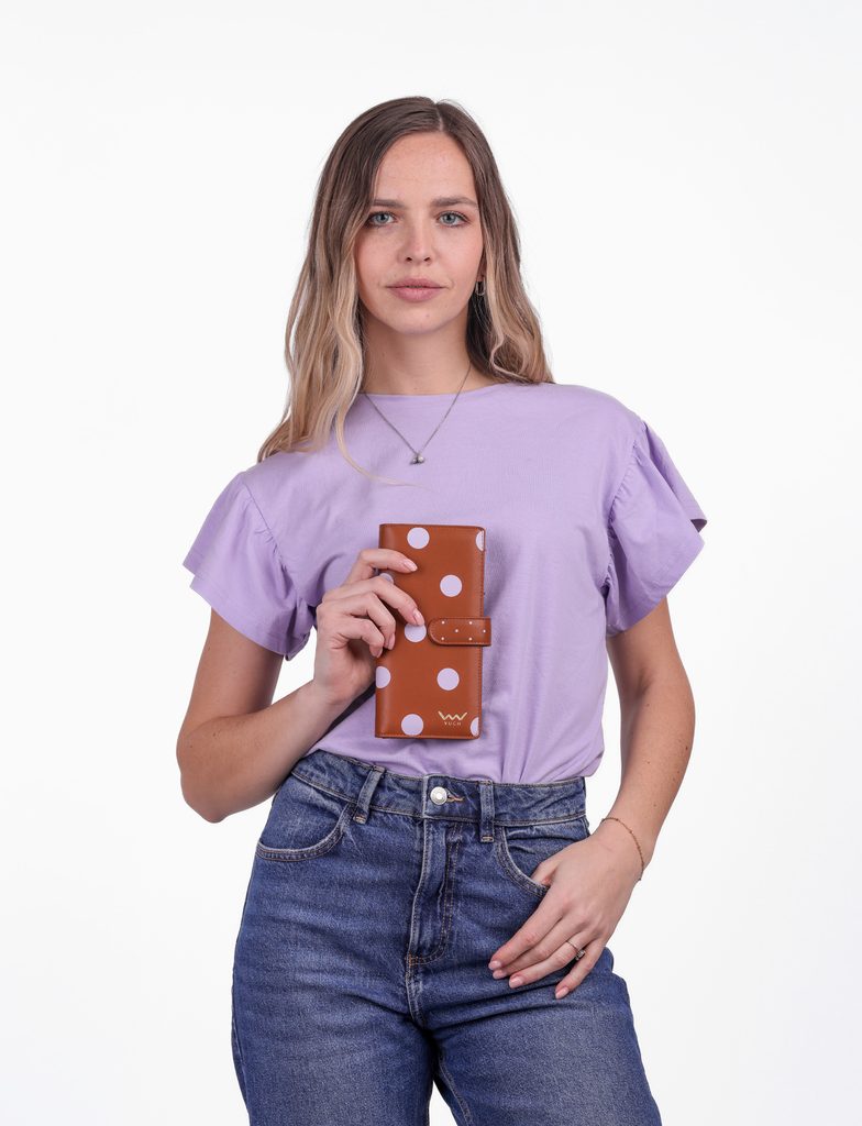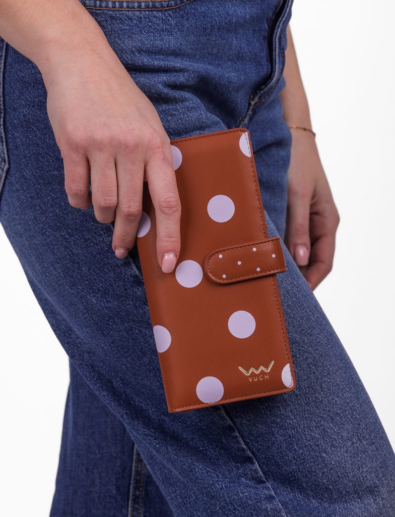Eleria Brown velika pikčasta denarnica s patentom