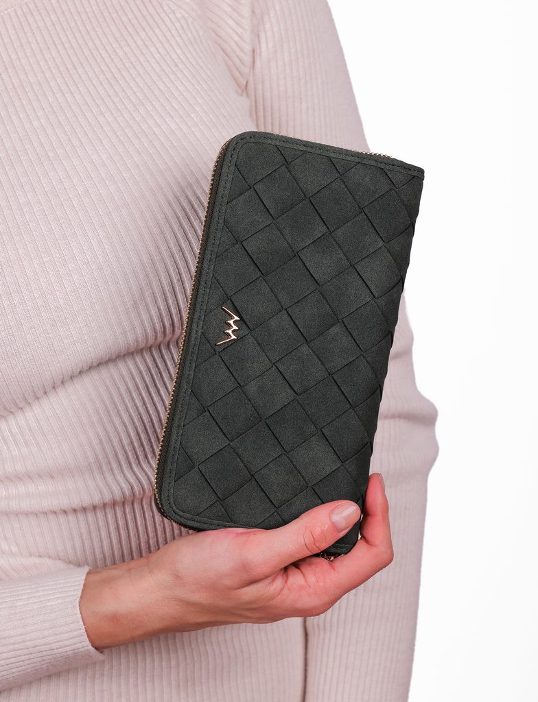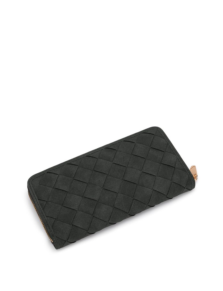 Nightie Nicci Intrecciato Green velika denarnica na zadrgo s pletenim vzorcem