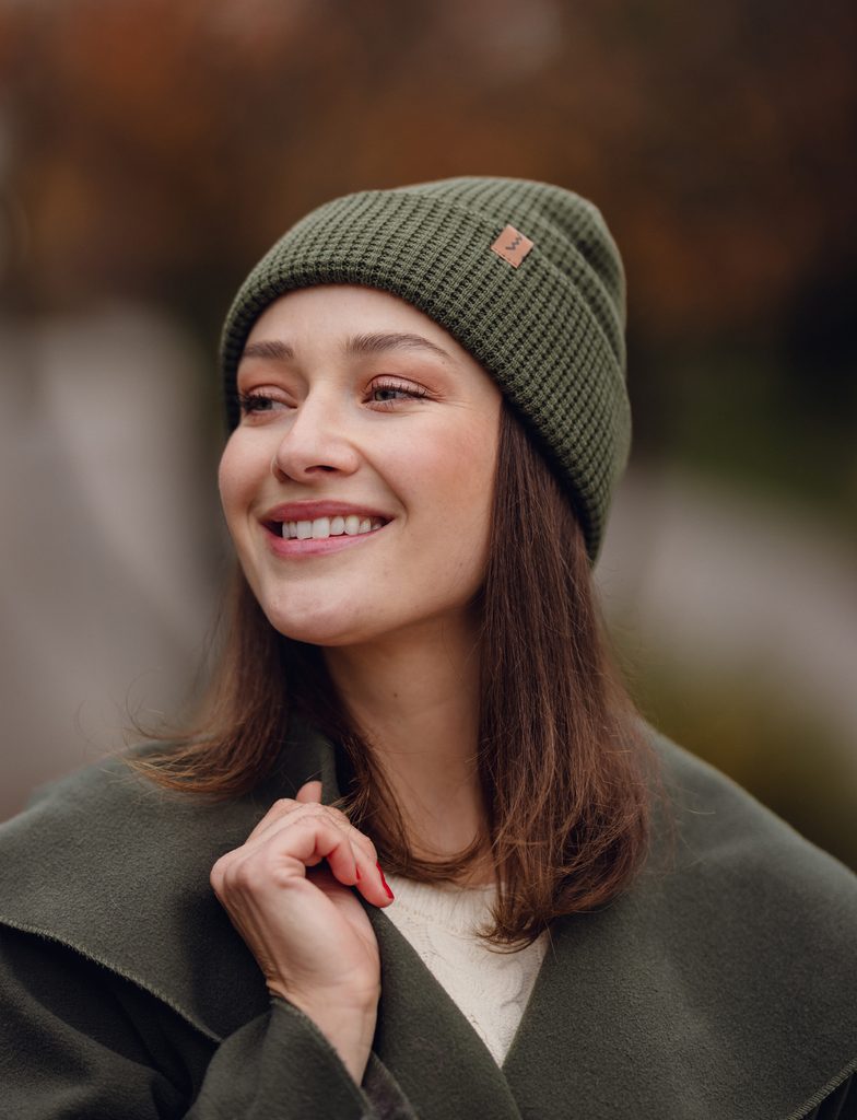 Mysa Green pletena kapa s usnjenim logotipom