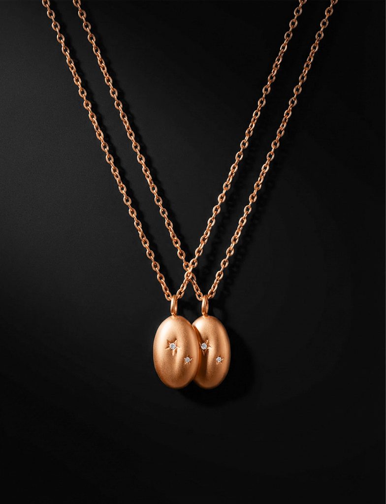 Več informacijParna ogrlica z obeskom, okrašenim s kristali, ki ima dvojni pomen. Ena za tebe, druga za nekoga bližnjega. Minimalistični dizajn poudarja nežen blesk kamnov in vas povezuje na nenaven, a lep način. Kos, ki spominja na povezanost, tudi ko ste vsak drugje.