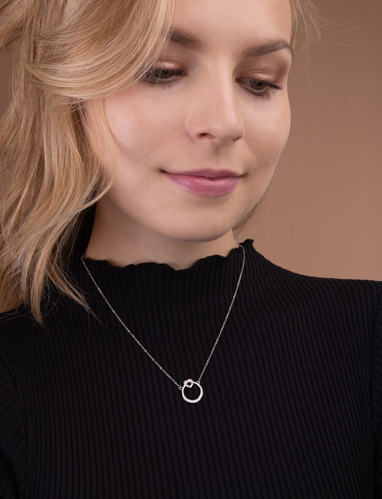 Ta verižica iz čistega srebra pooseblja simboliko neskončne ljubezni. Povezava sijočega kroga in nežnega srca kot da oznanja: Resnična ljubezen je neskončna. Popolna…