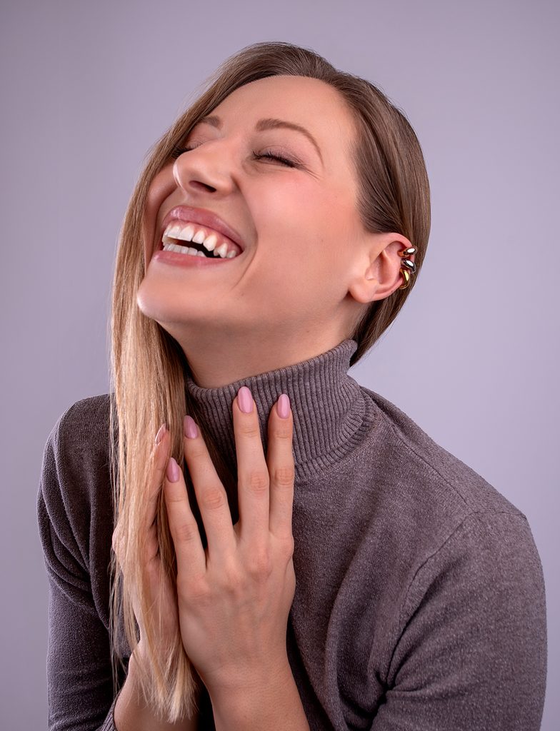 Uhan Mirn je izrazit ear cuff v obliki gladkega, rahlo masivnega obroča, ki se prilagodi ušesu in deluje čisto ter uravnoteženo. Preprosto ga natakneš. Brez prebadanja,…