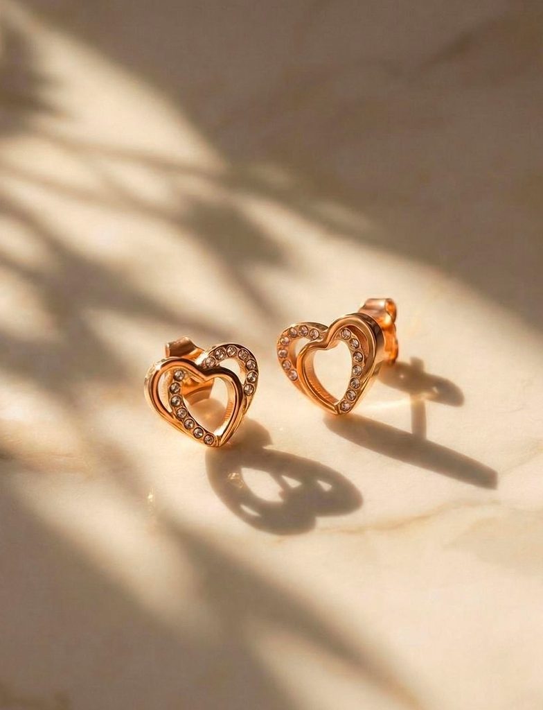 Uhani Costalla Rose Gold uhani v obliki srca s kristalčki
