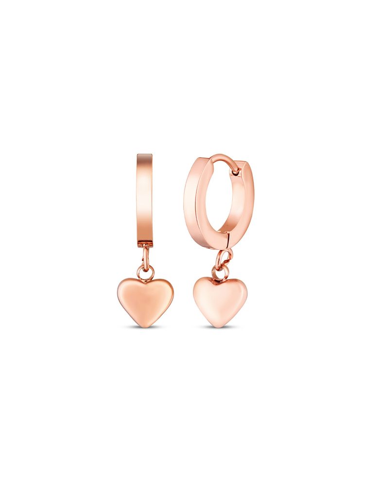 Uhani Nyvella Rose Gold viseči uhani z motivom srčka