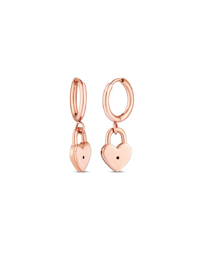 Uhani Zibella Rose Gold uhani z ključavnico v obliki srca