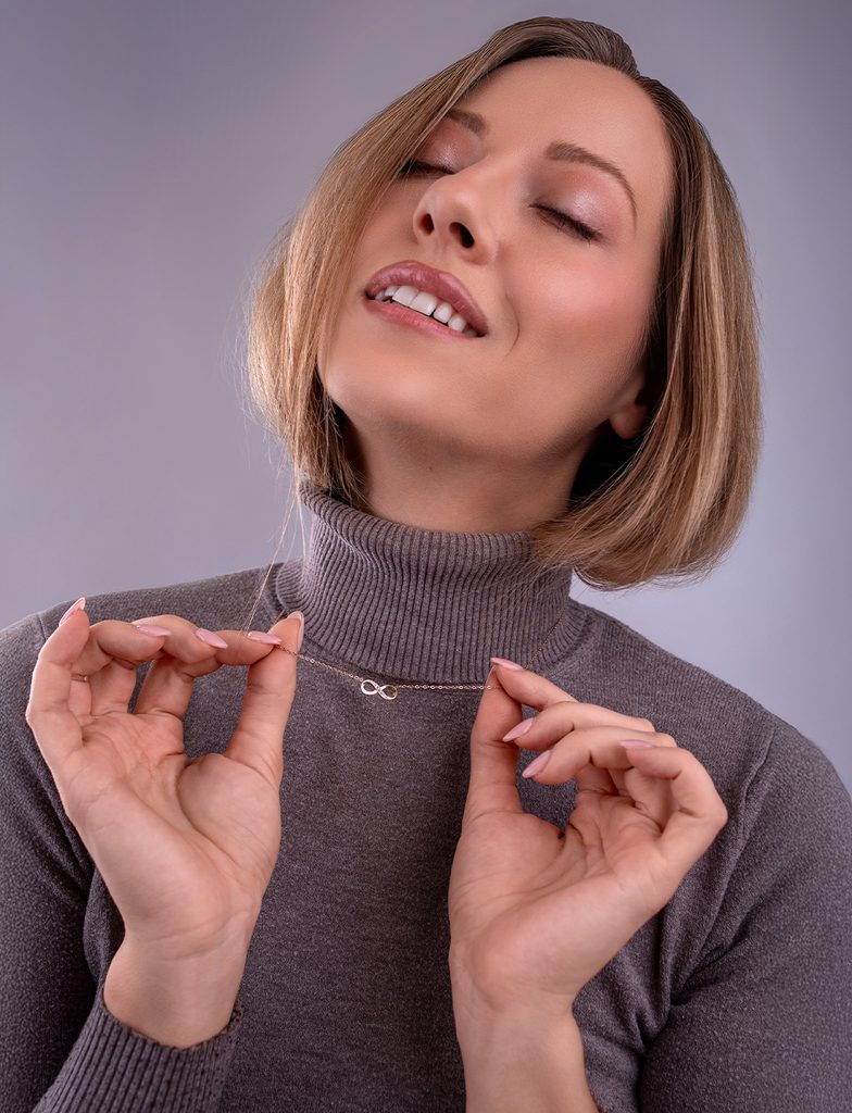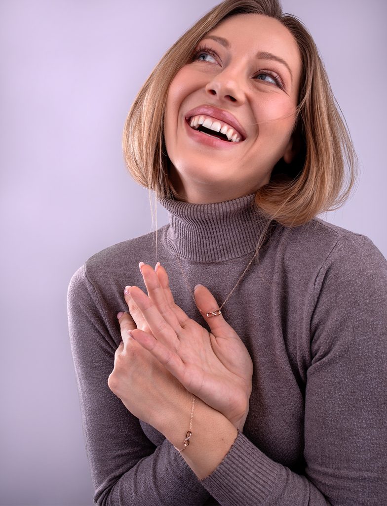 Več informacijOgrlica Enso nosi motiv neskončnosti, ki nežno opominja na to, kar naj traja. Bleščeči cirkoni dodajajo obesku rahel sijaj, ki ne deluje razkazovalno, ampak naravno. To je nakit, ki ustreza vsakemu dnevu in trenutkom, ko želiš biti malo bolj sama sebi. Enso je majhen detajl, ki ima svoj pomen.