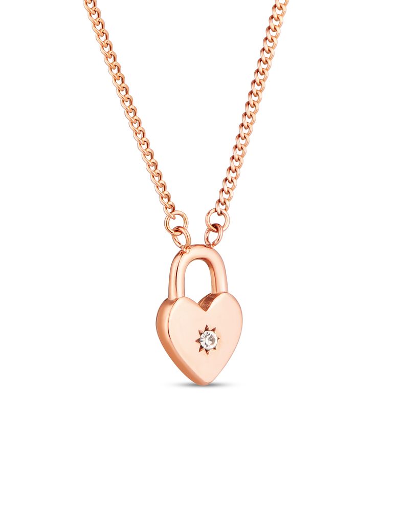 Ogrlica Zibella Rose Gold verižna ogrlica z ključavnico v obliki srca