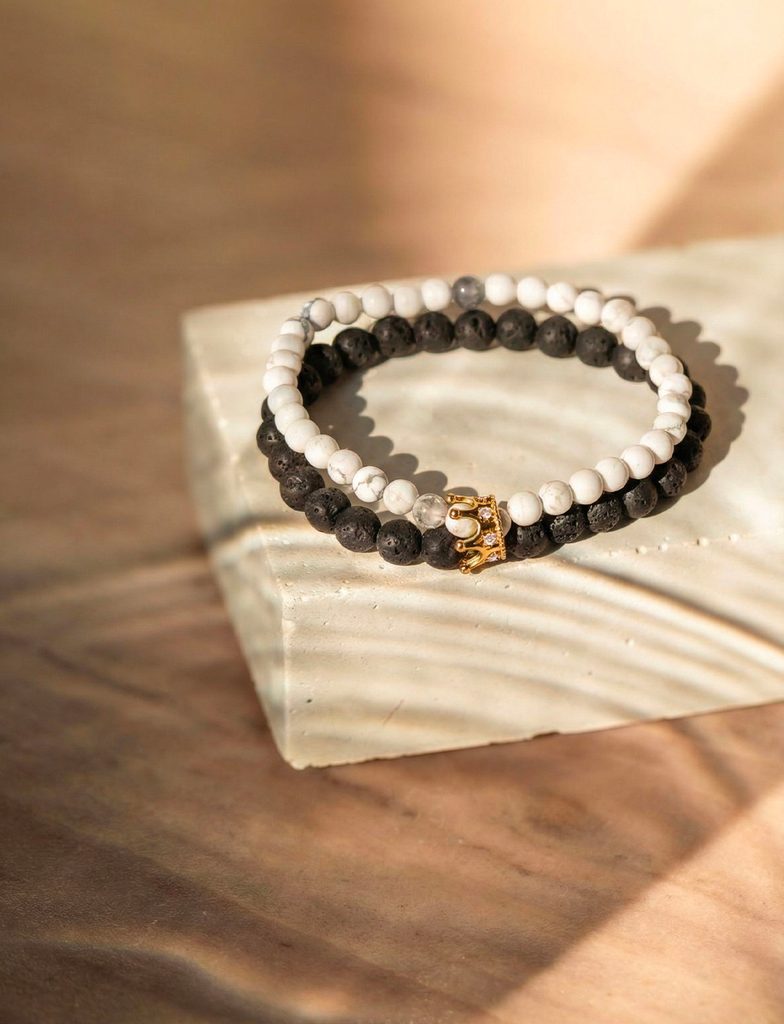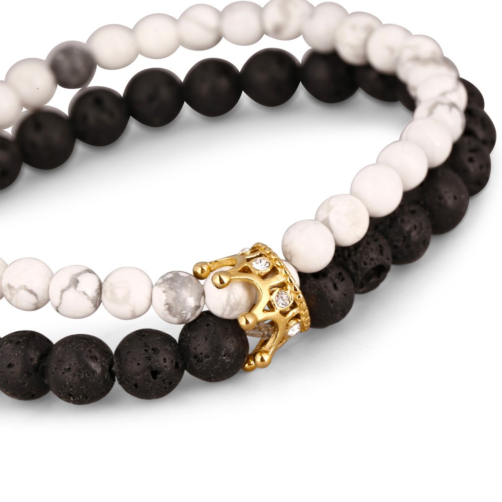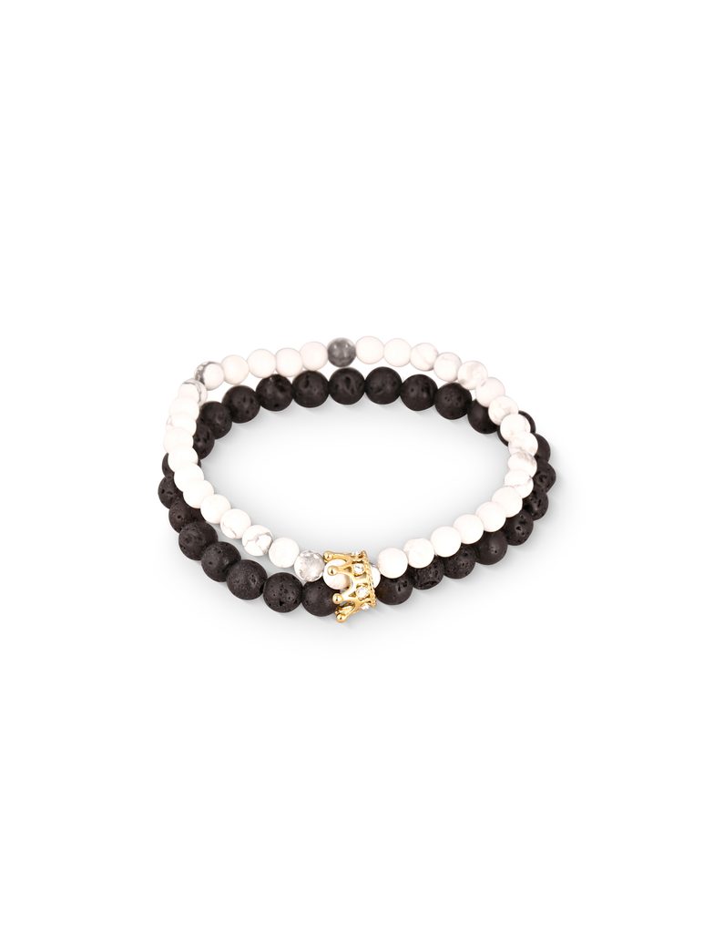 Jeden náramek nestačí, Vaše výsosti! Kombinace černé a bílé nikdy nezklame, hodí se ke všemu a tady je navždy spojená decentní zlatou korunkou, díky které budeš vždy za…