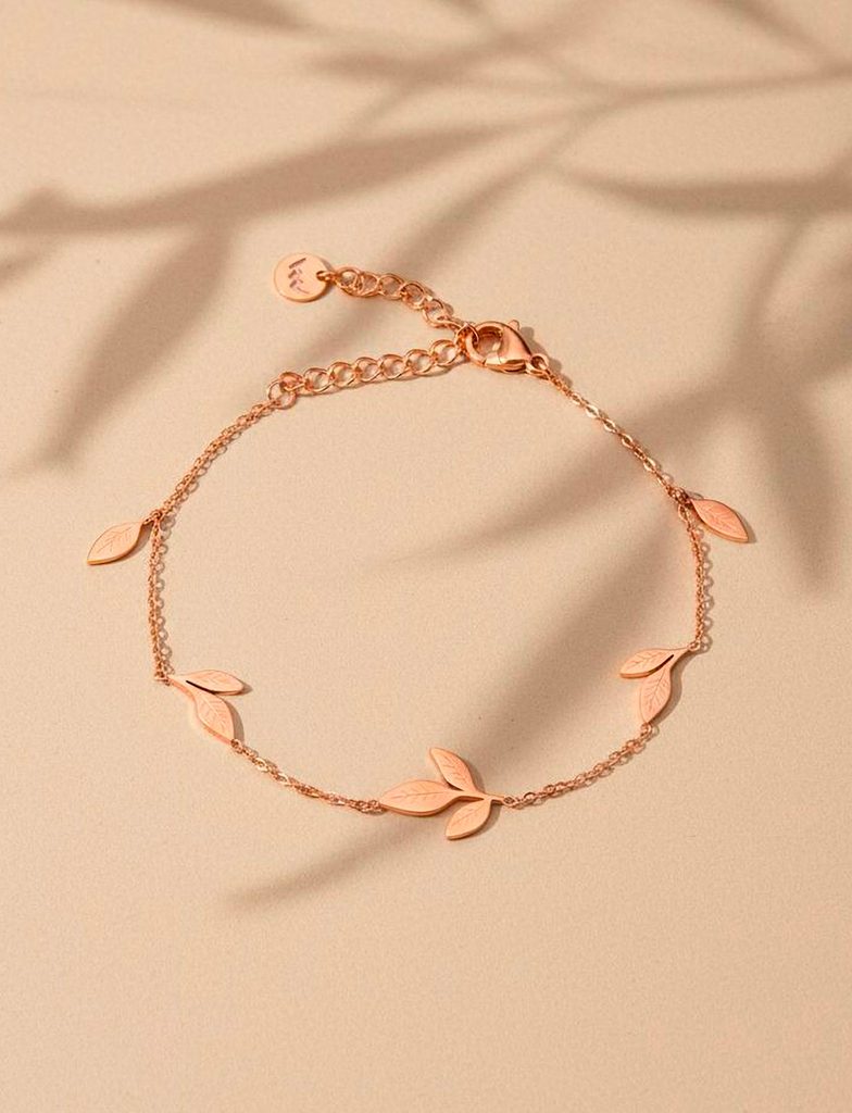 Zapestnica Gleam Rose Gold verižna zapestnica z motivom listov