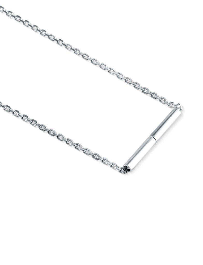 Več informacijOblikovanje prefinjene srebrne ogrlice iz kolekcije Laboratory avtorice Adéle Pečlové izhaja iz enake oblike kot uhani CLAREA iz te kolekcije, ki jih je navdihnila stilizacija logotipa VUCH. Ogrlica je obešena na klasično srebrno verižico, zaradi česar je univerzalni dodatek k vsem tvojim opravám. Zahvaljujoč minimalističnemu bajonetnemu zapiranju je ogrlica enostavna za nošenje in primerna za vsako priložnost.
