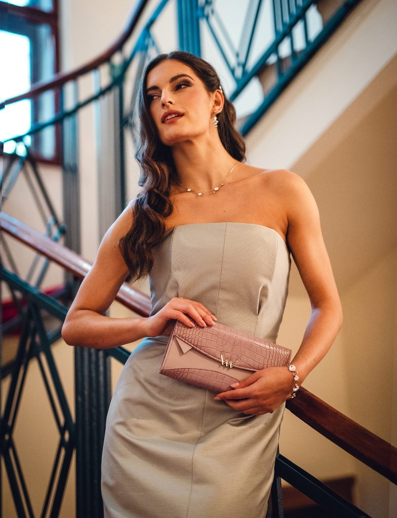 Omejena zbirka torbic modnega oblikovalca Dominika Navrátila je slavje elegance in natančnosti krojaškega ustvarjanja. Tri edinstvene torbice za različne družabne dogodke združujejo oblačilne elemente, ki so značilni za Dominikovo ustvarjanje. Navdih je našel v detajlih, kot so kroj korzeta, suknjičev zavihek in nežno prešivanje, ki torbicam dodaja kanček prefinjene magije. Je zbirka, ki združuje obrtno spretnost, ženstvenost in praktično uporabnost.