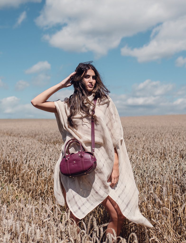 Kompaktna različica torbice iz kolekcije Med svetovi je minimalistična, a nezmotljiva. Idealna za prosti čas, večer v mestu ali tihi izlet na podeželje. Njen dizajn posnema enake detajle iz večje različice – spet s poklopcem, ki spominja na srajčni ovratnik kot simbol povezovanja stila in sproščenosti. Kljub manjšim dimenzijam ponuja presenetljivo dovolj prostora za telefon, veliko denarnico, ključe in šminko. Vtisnjeni X povezuje blagovno znamko Vuch z oblikovalskim rokopisom Pavla Berkyja – in hkrati namiguje na presečišče svetov, ki jih torbica povezuje.