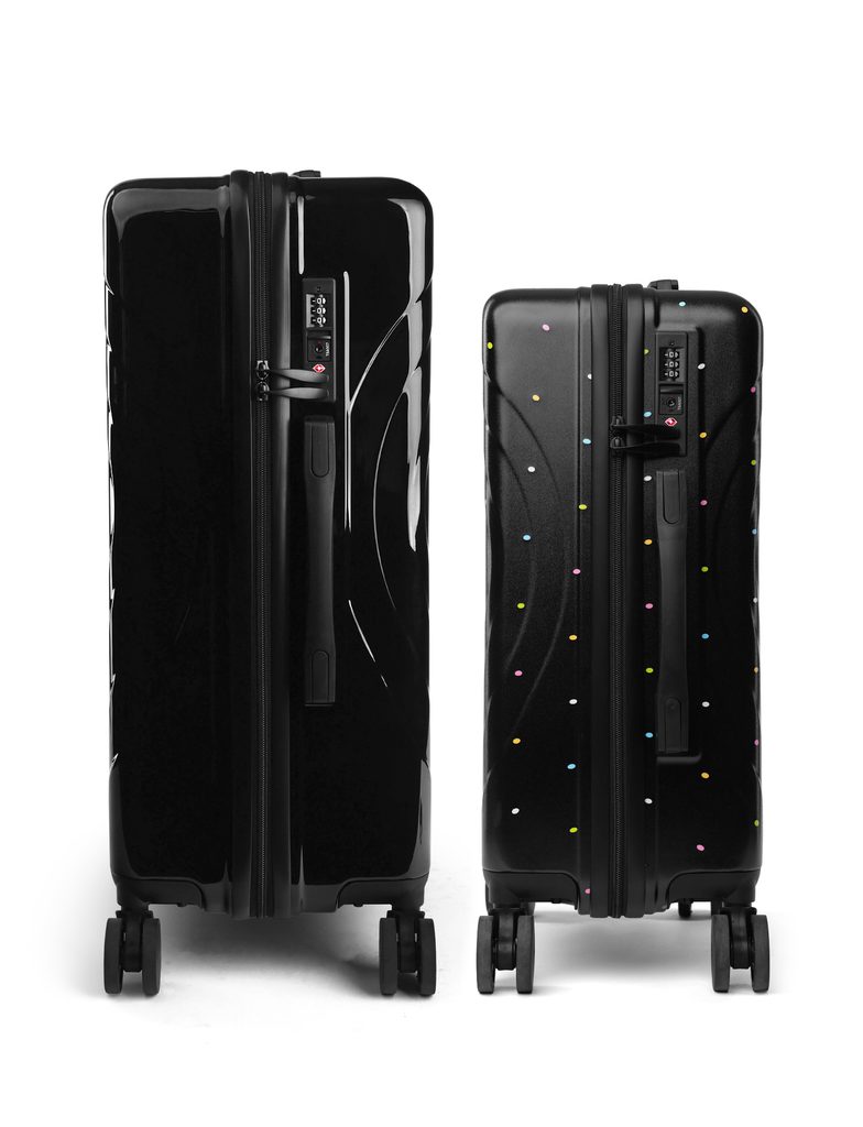 Združujejo vrhunski dizajn z maksimalno funkcionalnostjo – konstrukcija trdega ohišja zagotavlja zanesljivo zaščito in dolgo življenjsko dobo, medtem ko sofisticirane barvne variante dodajajo vsakemu potovanju stilski poudarek. Dizajn ohišja, ustvarjen v sodelovanju z oblikovalcem Romanom Kvito, je navdihnjen z trenutkom, ko vržeš kamen v vodo in na gladini se začnejo oblikovati koncentrični krogi – kot da bi v vodo vrgel naš logotip in se njegov odtis širi v prostor. Premišljeno zasnovana ergonomija in vrtljiva kolesca zagotavljajo priročno manipulacijo v vsaki situaciji. Ne glede na to, ali greš na kratek vikend ali dolg dopust, so ti kovčki pripravljeni biti tvoj zanesljiv partner. Staviš na odpornost, praktičnost in eleganco – vse to v enem paketu.