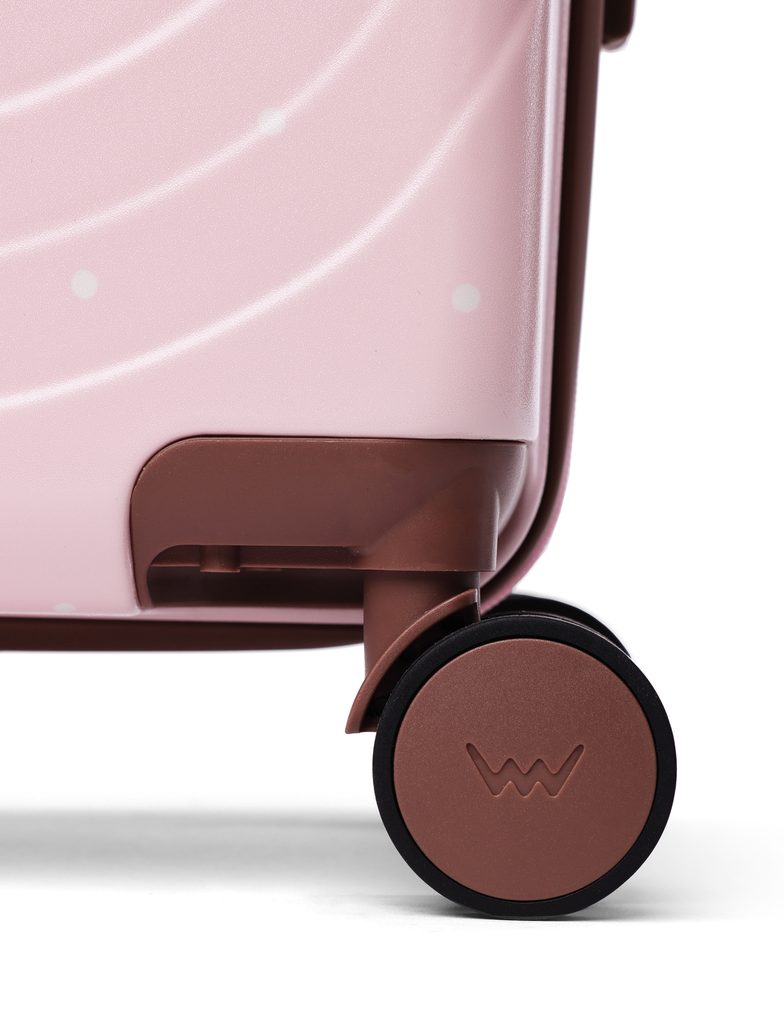 Združujejo vrhunski dizajn z maksimalno funkcionalnostjo – konstrukcija trde lupine zagotavlja zanesljivo zaščito in dolgo življenjsko dobo, medtem ko sofisticirane barvne variante dodajajo vsakemu potovanju slogoven poudarek. Dizajn lupine, ustvarjen v sodelovanju z oblikovalcem Romanom Kvito, je navdihnjen z trenutkom, ko vržeš kamen v vodo in se na gladini začnejo oblikovati koncentrični krogi – kot da bi v vodo vrgel naš logotip in se njegov odtis širi v prostor. Premišljeno zasnovana ergonomija in vrtljiva kolesca zagotavljajo udobno manipulacijo v vsaki situaciji. Ne glede na to, ali greš na kratek vikend ali dolg dopust, so ti kovčki pripravljeni biti tvoj zanesljiv partner. Staviš na odpornost, praktičnost in eleganco – vse to v enem paketu.