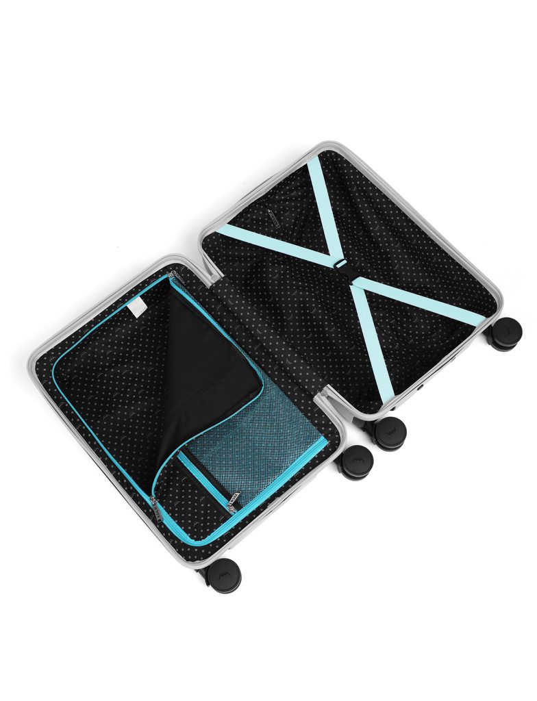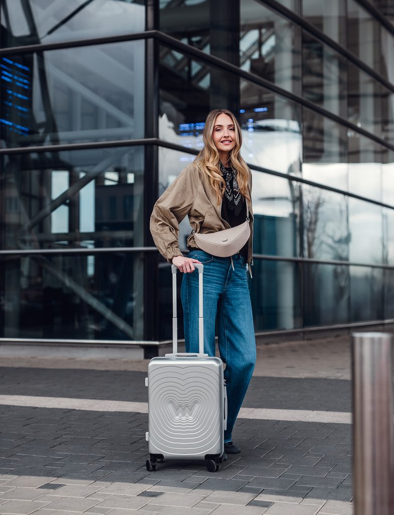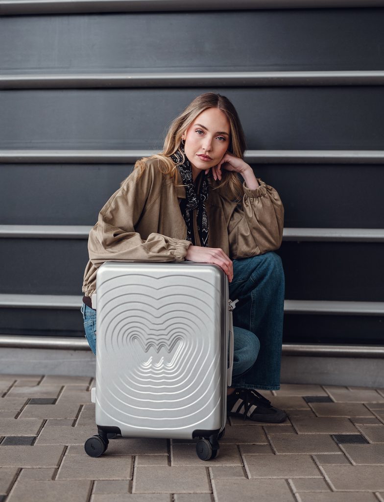 Združujejo vrhunski dizajn z maksimalno funkcionalnostjo – konstrukcija iz trde lupine zagotavlja zanesljivo zaščito in dolgo življenjsko dobo, medtem ko sofisticirane barvne variante dodajajo vsakemu potovanju slogoven poudarek. Dizajn lupine, ustvarjen v sodelovanju z oblikovalcem Romanom Kvito, je navdihnjen z trenutkom, ko vržeš kamen v vodo in se na gladini začnejo oblikovati koncentrični krogi – kot da bi v vodo vrgel naš logotip in se njegov odtis širi v prostor. Premišljeno zasnovana ergonomija in vrtljiva kolesca zagotavljajo udobno manipulacijo v vsaki situaciji. Ne glede na to, ali greš na kratek vikend ali dolg dopust, so ti kovčki pripravljeni biti tvoj zanesljiv partner. Staviš na odpornost, praktičnost in eleganco – vse to v enem paketu.