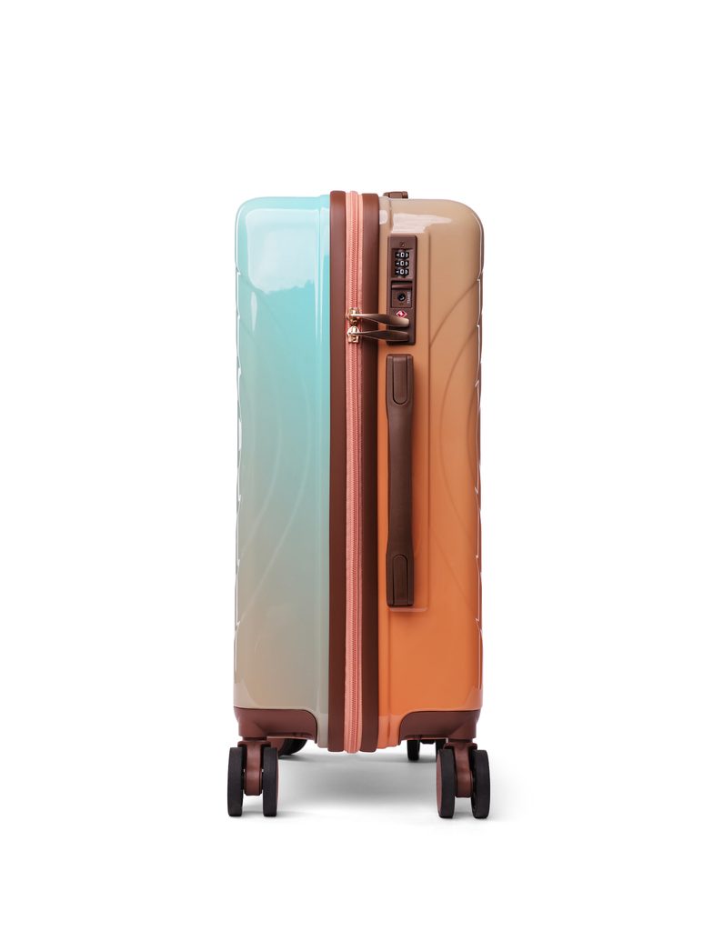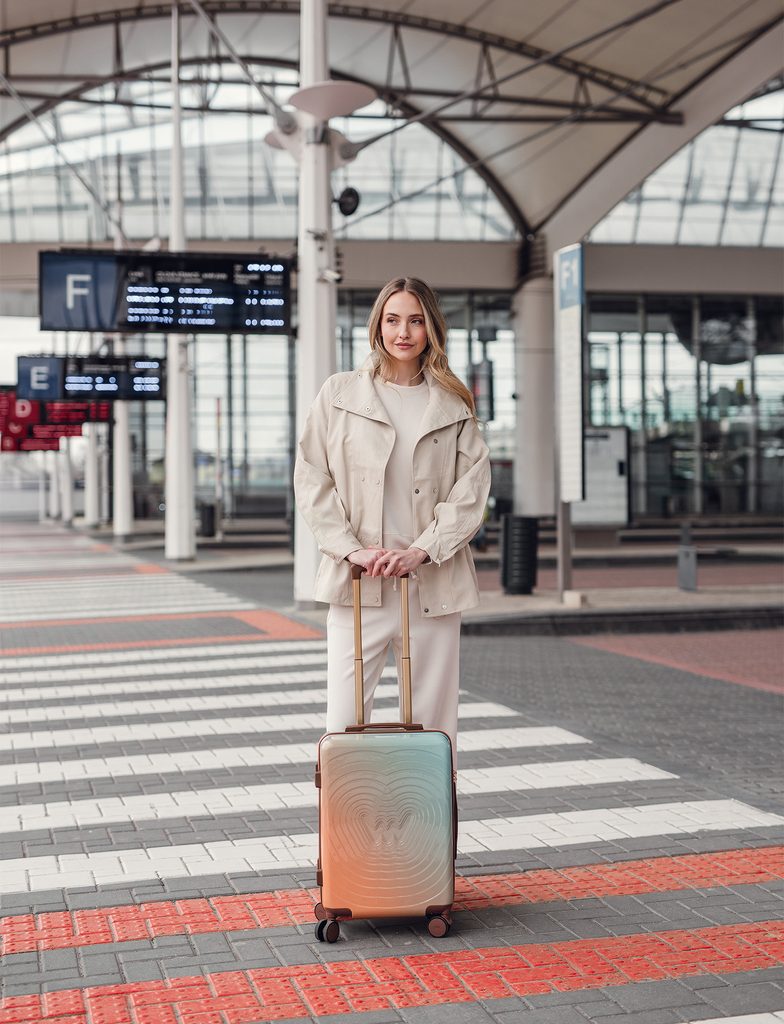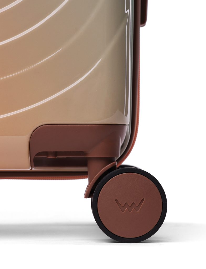Združujejo vrhunski dizajn z maksimalno funkcionalnostjo – konstrukcija s trdo lupino zagotavlja zanesljivo zaščito in dolgo življenjsko dobo, medtem ko sofisticirane barvne variante dodajajo vsakemu potovanju slogoven poudarek. Dizajn lupine, ustvarjen v sodelovanju z oblikovalcem Romanom Kvito, je navdihnjen z trenutkom, ko vržeš kamen v vodo in se na gladini začnejo oblikovati koncentrični krogi – kot da bi v vodo vrgel naš logotip in se njegov odtis širi v prostor. Premišljeno zasnovana ergonomija in vrtljiva kolesca zagotavljajo udobno manipulacijo v vsaki situaciji. Ne glede na to, ali greš na kratek vikend ali dolg dopust, so ti kovčki pripravljeni biti tvoj zanesljiv partner. Staviš na odpornost, praktičnost in eleganco – vse to v enem paketu.