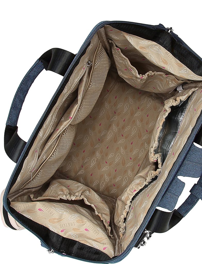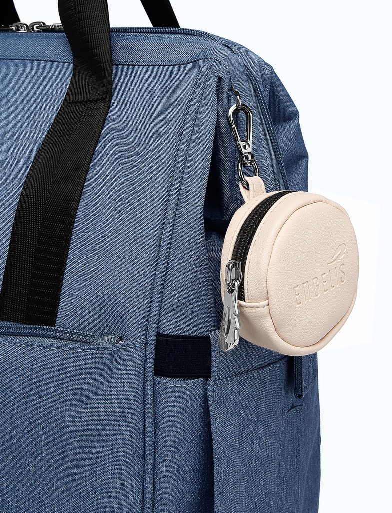 Nahrbtnik, ki ima vse na svojem mestu. Več žepov pomeni več prostora za stekleničko, malico in lastne stvari. Trdna zanka prenese vsakodnevno obremenitev, snemljiv okrogel žepek pa sprejme dudo, ki jo želiš imeti čim hitreje pri roki. Praktičen in trpežen nahrbtnik, pripravljen na vse, kar dan prinese, ne glede na to, ali se premikaš po mestu ali si na izletu z otroškimi vozički.