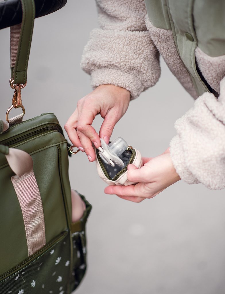Praktičen nahrbtnik v nežnem cvetličnem dizajnu, ki ohranja red tudi v najbolj napornem dnevu. Zahvaljujoč več žepom imaš jasno, kam seči po stekleničko, malico ali svoje drobnarije. Trdna zanka zdrži vsakodnevno uporabo, snemljiv okrogel žepek pa je idealen za dudo ali druge malenkosti, ki jih potrebuješ imeti takoj pri roki. Odporen, pregleden in pripravljen te spremljati pri mestnih opravkih in sprehodih z otroškim vozičkom.