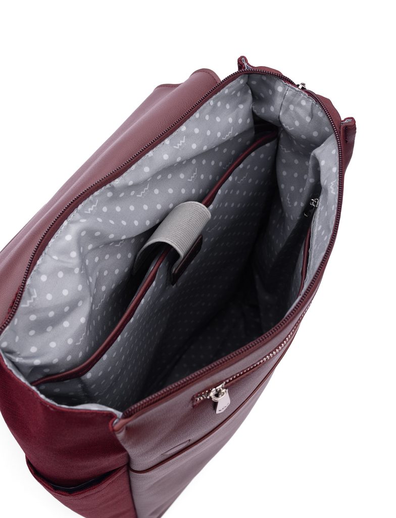 Več informacijPotovalni nahrbtnik Gioia ve, da lahko slog in praktičnost hodita z roko v roki. Kombinira umetno usnje in tekstil, zato je vzdržljiv in eleganten. Ima veliko pametnih žepov – ob straneh, na hrbtni strani, znotraj in za prenosnik, ter zahvaljujoč kombinaciji zadrge in magnetnih pokrovov bo vse varno shranjeno. Idealen spremljevalec na izlete, potovanja in vsakodnevne premike.