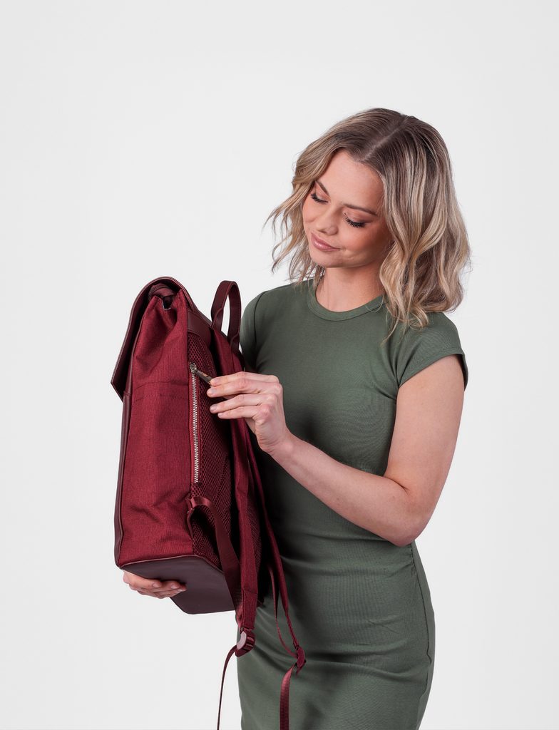 | Lastnosti | Žep za steklenico, Oblazinjen hrbet, Oblazinjeni naramnice, Skriti žep, Notranji žep na zadrgo, Žep za prenosnik |
