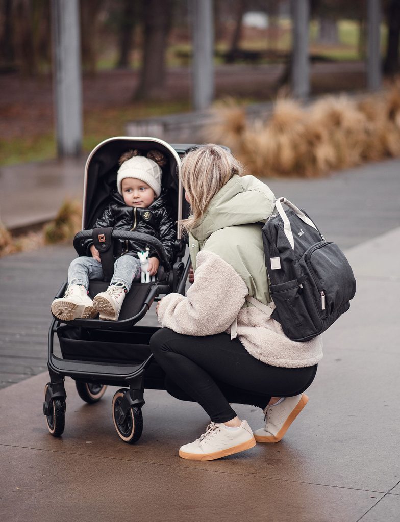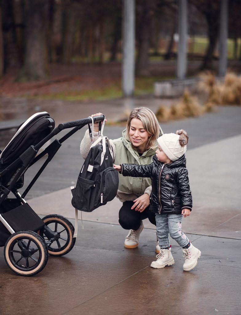 Odporen material in praktična razporeditev iz njega delajo zanesljivega partnerja za vse poti – od jutranjih sprehodov do daljših dni z otroškimi vozički.