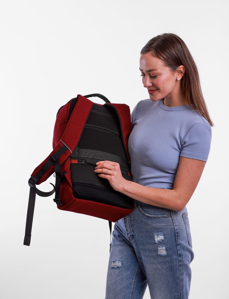 | Lastnosti | Žep za steklenico, Oblazinjen hrbet, Oblazinjeni naramnice, Skriti žep, Notranji žep na zadrgo, Trak za kovček, Žep za prenosnik, Odsevni elementi |