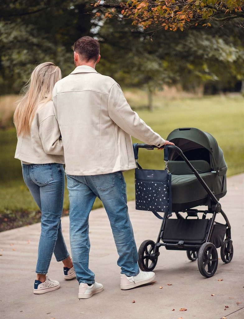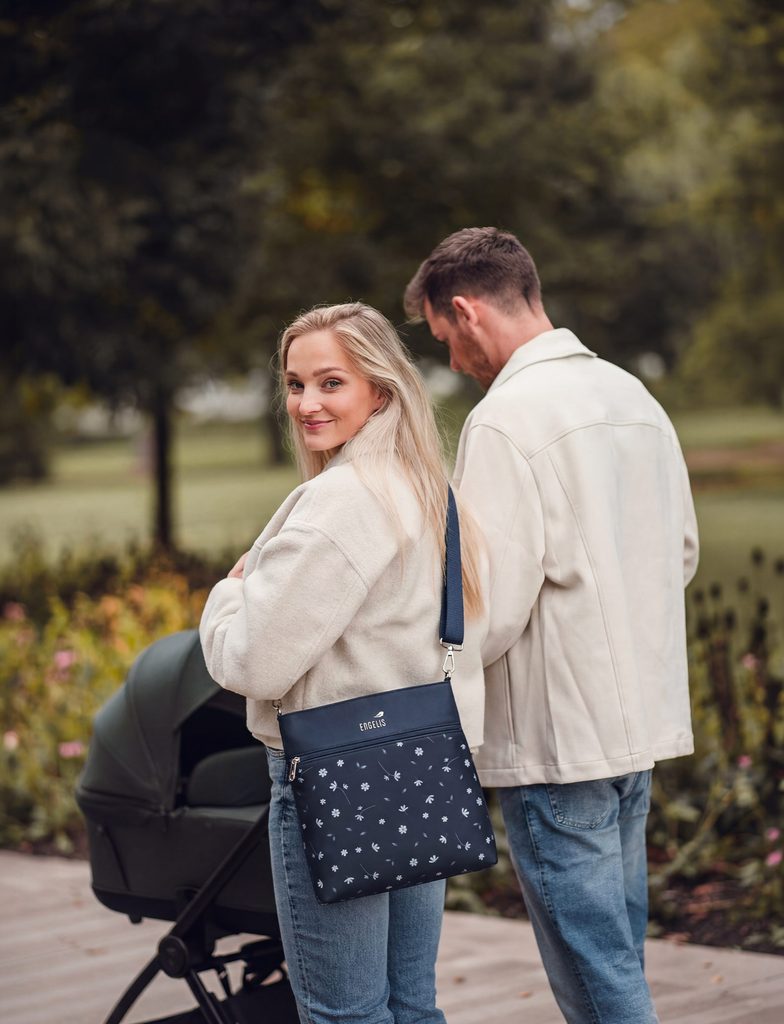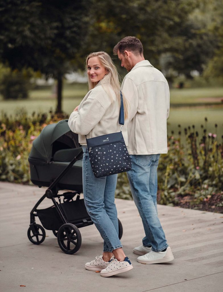 Amma Flowers Blue crossbody torbica za otroški voziček Engelis